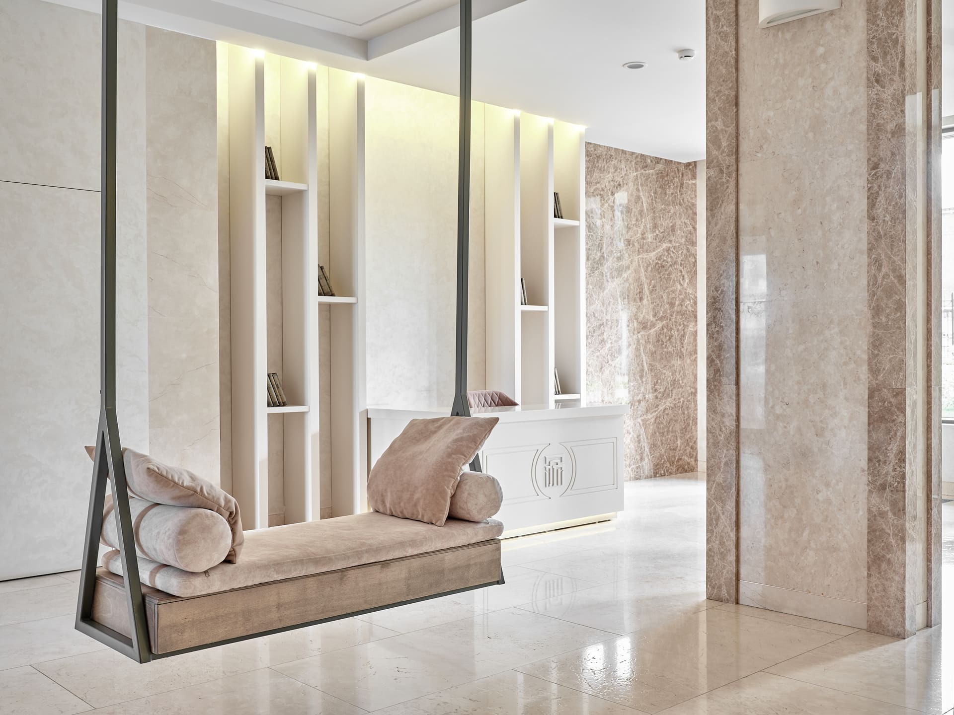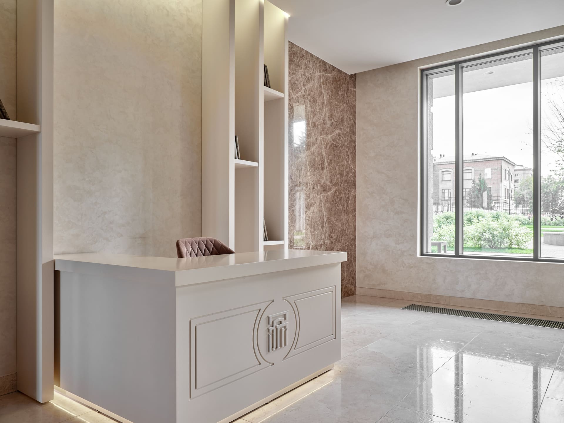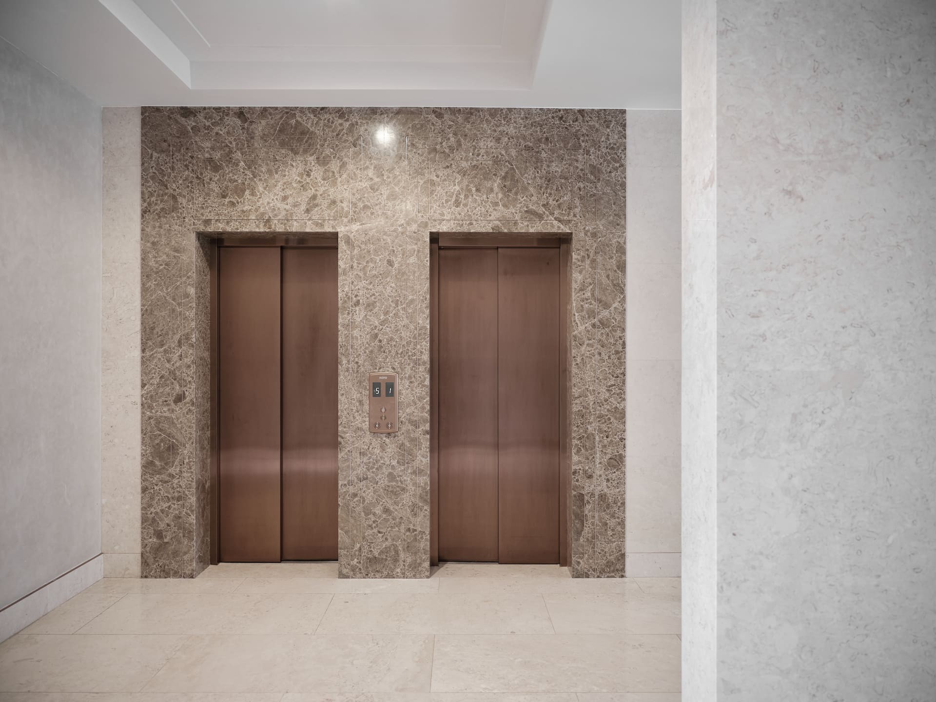 Мы позаботились о том, чтобы комфорт и красота сопровождали жителей не только снаружи, но и в холлах. Внутри вас ждет уютная лаунж-зона. Респектабельность помещений подчеркивает отделка из натурального мрамора Imperador. Акцентная деталь — подвесная качель, с уникальной системой амортизаторов. Ее разработали сотрудники нашей компании. Бесшумные лифты KOYO выполнены в цвете «розовое золото» и сочетаются с теплой уютной палитрой холла. Эксклюзивные межквартирные двери спроектированы специально для жилого комплекса «Лев Толстой», их дизайн защищен авторским правом. Элегантная фурнитура, стильные кнопки звонков, камерное освещение- все подобрано идеально. Комфорт владельцев квартир ЖК «Лев Толстой» обеспечивает собственная служба консьерж-сервиса.