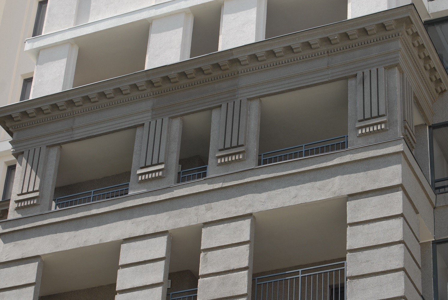 Геометрия фасадов «Дома на Немировича» завораживает. Для «Дома на Немировича» специалисты компания «Новый мир» выбрали стиль belle epoque (в переводе «изящная эпоха») – архитектурное эго стремительного Нью-Йорка из эпохи Драйзера и Фолкнера. Вертикальные тяги-пилоны создают ощущение устремленности ввысь. Благородная рустика из гранита и подсветка формируют величественный облик. Панорамные окна делают квартиры светлыми и уютными. «Дом на Немировича» — это сдержанные тона и четкие изящные линии. В отделке фасада использован натуральный камень.